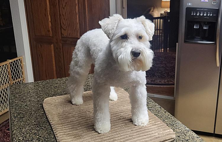 Today, September 25, is National Schnauzer Day, "A day to celebrate all things schnauzer. The majestic breed comes in three sizes, Miniature, Standard and the mighty Giant, all with loveable characteristics and of course the iconic beard." Now that we are back home for the fall, we took our little boy, a white Miniature Schnauzer,