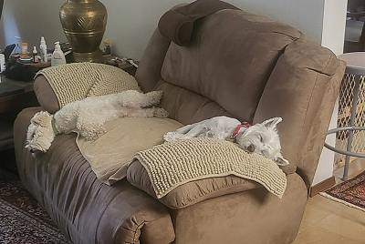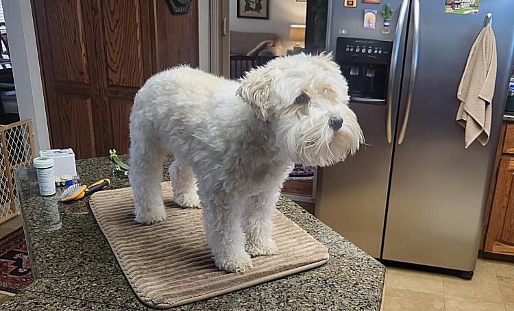 Riley , in for a haircut yesterday to celebrate the event, and with his typical "puppy cut", he is adorable as ever.