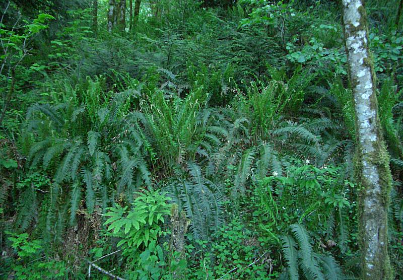 Ferns, wildflowers & other foliage abound in the densely forested hillsides along the lake.