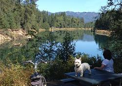 Just 45 minutes north of the picturesque town of Coeur d'Alene, where we been many times over the years, and enjoyed sailing on the magnificent Lake Coeur d'Alene, lies StoneRidge Resort, a golf and Motorcoach resort nestled in the mountains south of Priest Lake. We have friends, Myra and Dennis Bailey, who own a pad and spend their summers here, and another set of Motorcoach friends, Bill and Ginny, are joining us here for a week as well. We don't play golf but the bicycling is great here, it is a lovely setting and there's a nice little lake for sailing the RC sailboats and a big lake close by for using the pedal kayack. Should be a relaxing week.