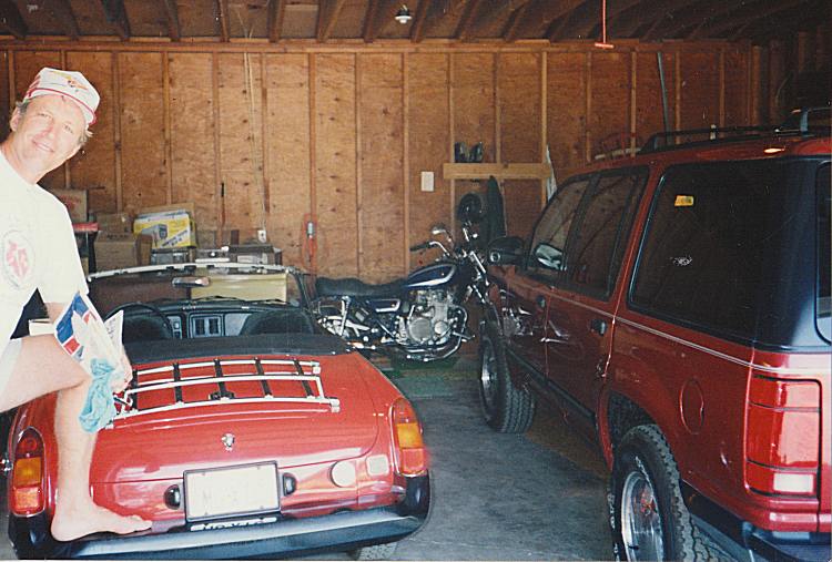 Although we lived in Lake Oswego, Oregon as our permanent home from 1992-2013, I spent most of my time in the summer in the Columbia River Gorge at my Rowena windsurfing property located right on the river at Rowena, just east of Hood River. Libby would drive out on weekends in the early days. I had all my toys in the garage in Rowena... my 1992 Ford Explorer, my red MGB, and in the background my custom 1977 Kawasaki 1100.